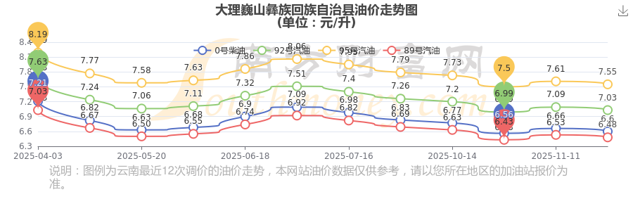 大理巍山彝族回族自治縣歷史油價(jià)走勢(shì)圖