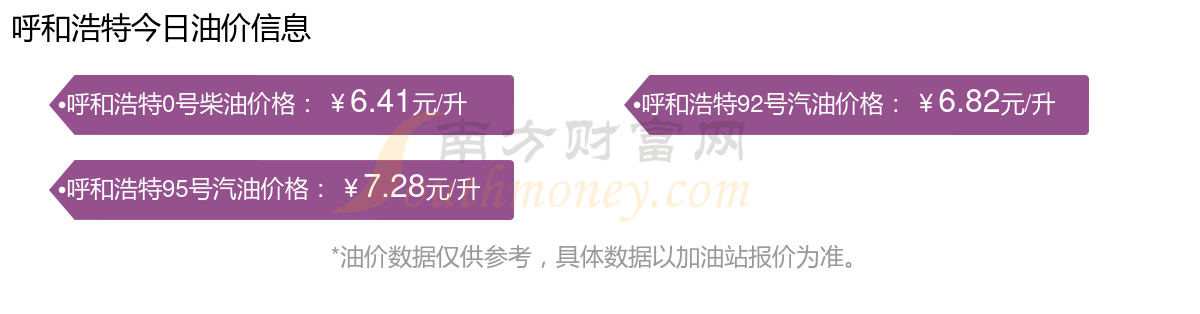 油價(jià)數(shù)據(jù)僅供參考,請(qǐng)以您所在地區(qū)的加油站報(bào)價(jià)為準(zhǔn)。南方財(cái)富網(wǎng)發(fā)布此信息的目的在于傳播更多信息,對(duì)使用該油價(jià)信息所導(dǎo)致的結(jié)果概不承擔(dān)任何責(zé)任。