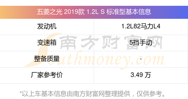 在動(dòng)力上,五菱之光 2019款 1.2L S 標(biāo)準(zhǔn)型配備的是一臺(tái)1.2L82馬力L4自然吸氣發(fā)動(dòng)機(jī),匹配的是5擋手動(dòng)擋變速箱,燃料形式為汽油,廠家參考價(jià)3.49萬(wàn)元。