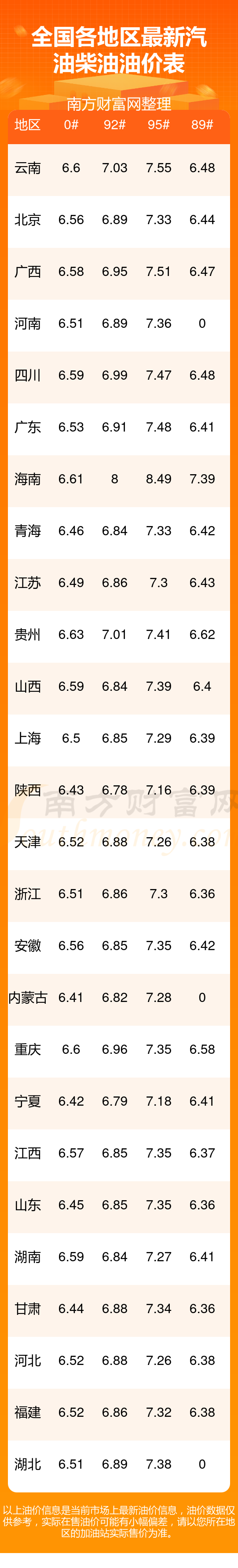 全國各地區(qū)2025年最新汽油價(jià)格表