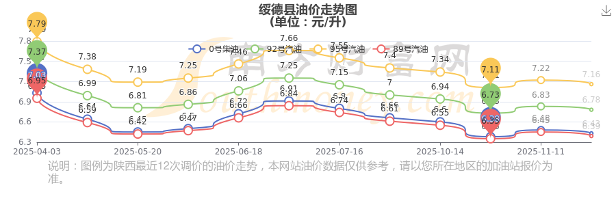 12月2日綏德縣汽油、柴油價(jià)格是11月25日調(diào)整后的價(jià)格,每升價(jià)格具體為:92號汽油為6.78元,下跌了0.05元,下跌幅達(dá)0.73%;95號汽油為7.16元,下跌了0.06元,下跌幅達(dá)0.83%;89號汽油為6.39元,下跌了0.06元,下跌幅達(dá)0.93%;0號柴油為6.43元,下跌了0.05元,下跌幅達(dá)0.77%。