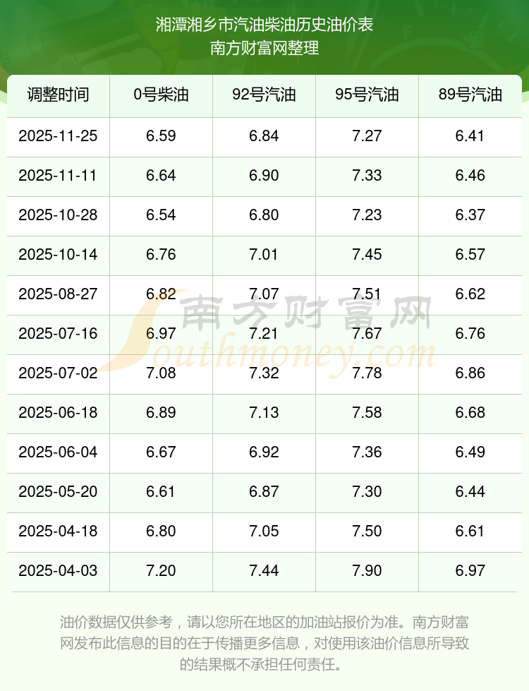 2025年湘潭湘鄉(xiāng)市油價調(diào)整時間表