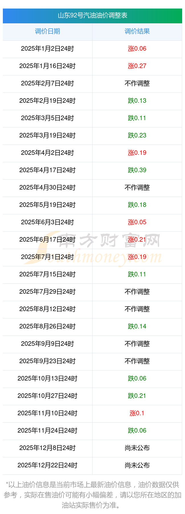 油價數(shù)據(jù)僅供參考,請以您所在地區(qū)的加油站報價為準(zhǔn)。南方財富網(wǎng)發(fā)布此信息的目的在于傳播更多信息,對使用該油價信息所導(dǎo)致的結(jié)果概不承擔(dān)任何責(zé)任。