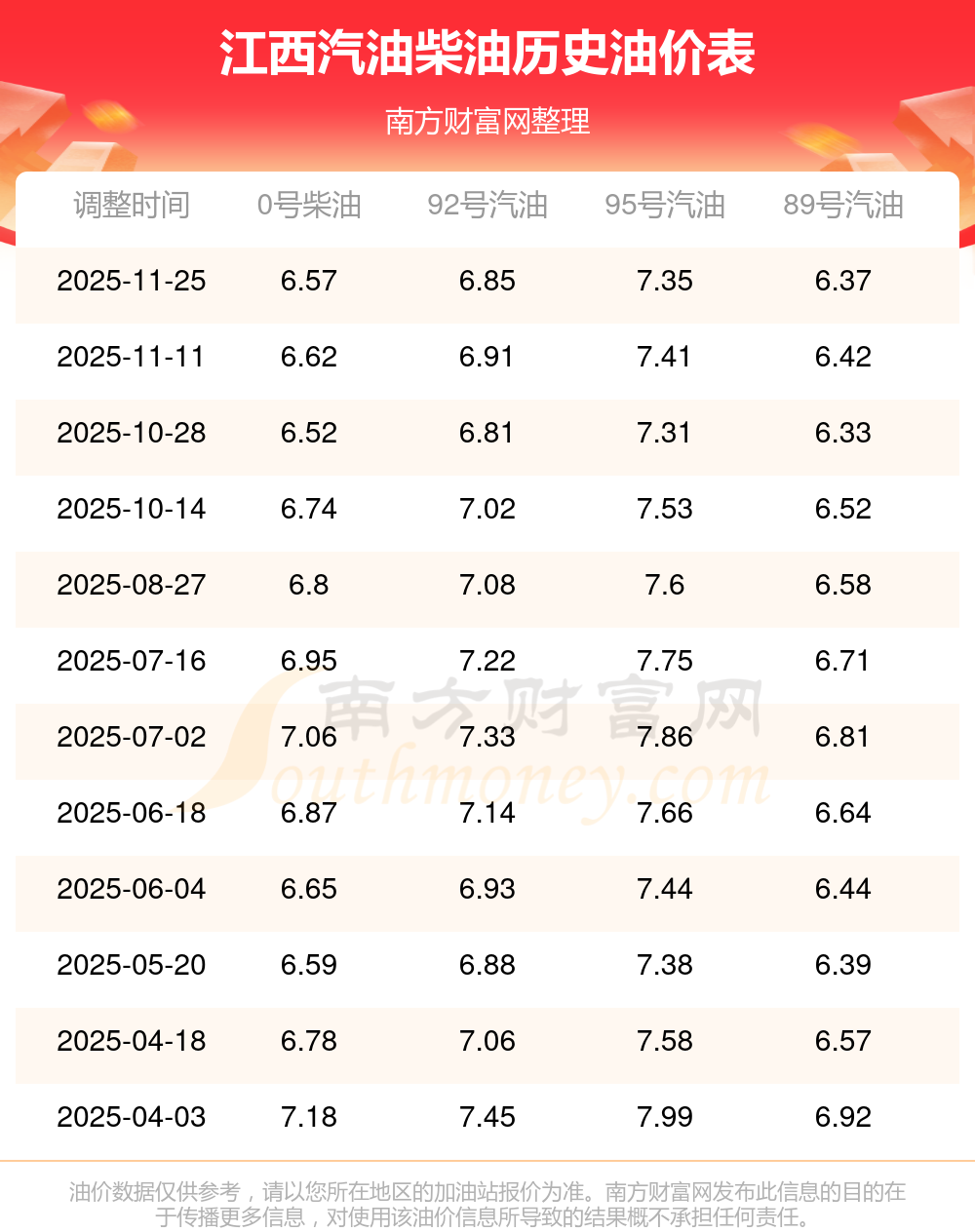 按11月25日0號柴油最新調(diào)整價格6.57元每升來計算(以江西為例),該車型百公里平均油費為61.298元,按上一輪11月11日調(diào)整價格6.62元每升來計算,百公里平均油費為61.765元,對比上一輪少花0.467元,下一輪油價調(diào)整時間為12月8日24時。