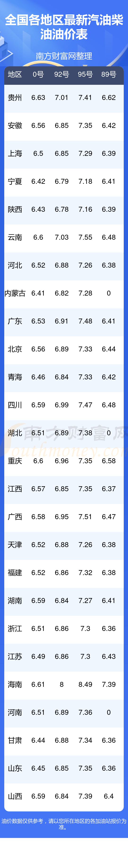 2025年全國(guó)各地區(qū)汽油價(jià)格表
