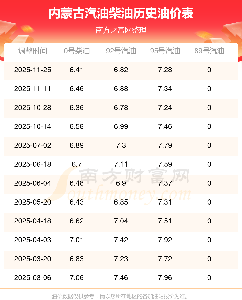 按11月25日92號汽油最新調(diào)整價格6.82元每升來計算(以內(nèi)蒙古為例),該車型百公里平均油費(fèi)為64.722元,按上一輪11月11日調(diào)整價格6.88元每升來計算,百公里平均油費(fèi)為65.291元,對比上一輪少花0.569元,下一輪油價調(diào)整時間為12月8日24時。