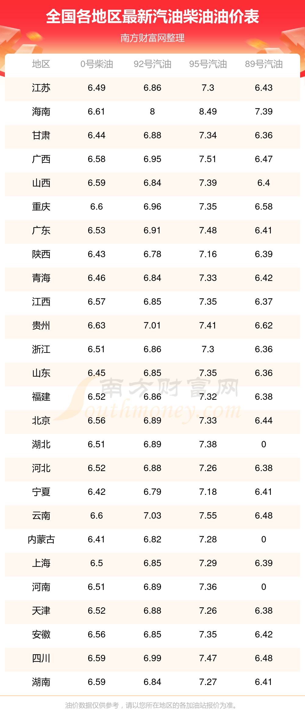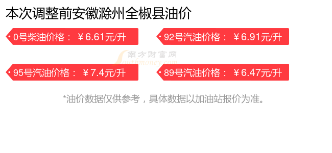 油價調(diào)整最新消息:下一輪油價調(diào)整時間12月8日24時。12月2日安徽滁州全椒縣汽油、柴油價格是多少錢一升?11月25日油價調(diào)整后,每升油價為:92號汽油為6.85元,減了0.06元,減幅達0.87%;95號汽油為7.35元,減了0.05元,減幅達0.68%;89號汽油為6.42元,減了0.05元,減幅達0.77%;0號柴油為6.56元,減了0.05元,減幅達0.76%。