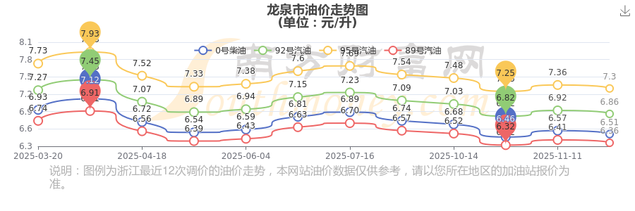 龍泉市12月2日95號汽油歷史油價調(diào)整走勢圖