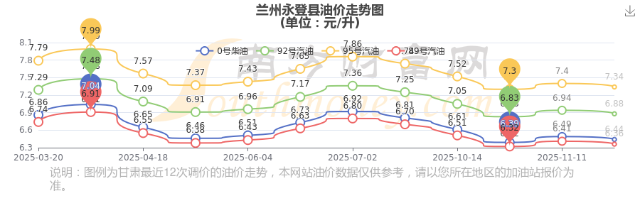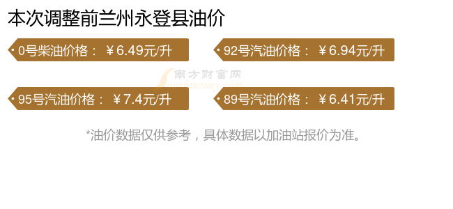 12月2日蘭州永登縣汽油、柴油每升的價(jià)格詳情如下:92號汽油6.88元,減了0.06元;95號汽油7.34元,減了0.06元;89號汽油6.36元,減了0.05元;0號柴油6.44元,減了0.05元,本次油價(jià)的調(diào)整時(shí)間為11月25日。