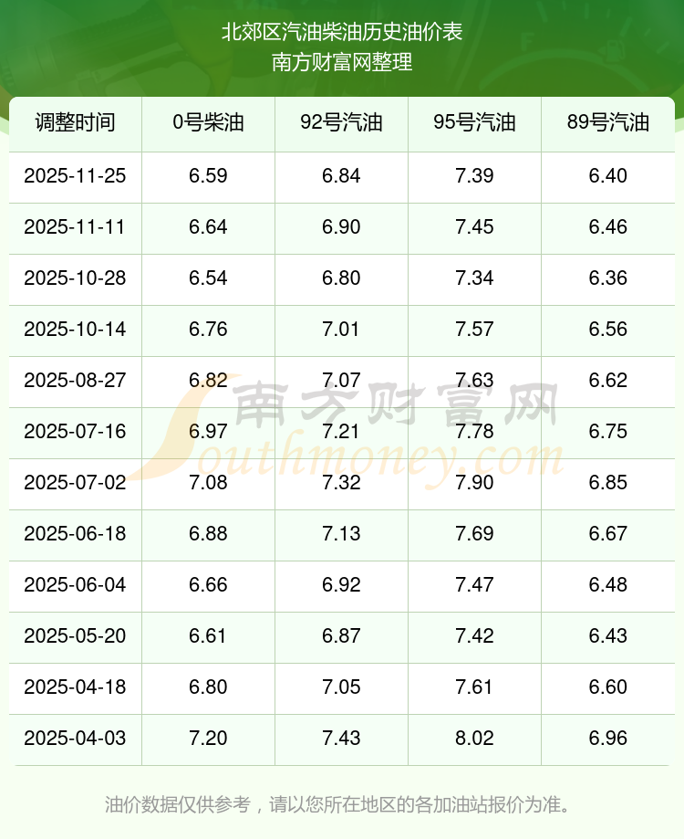 12月2日北郊區(qū)今日汽油價(jià)格如下:92號(hào)汽油6.84元;95號(hào)汽油7.39元;89號(hào)汽油6.4元;0號(hào)柴油6.59元(該價(jià)格為11月25日調(diào)整后的價(jià)格)。
