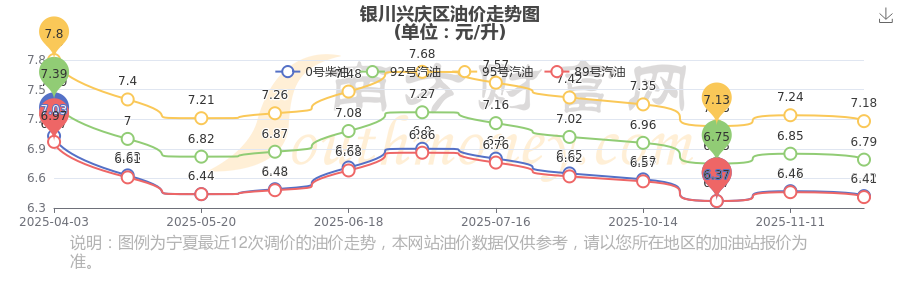 12月2日銀川興慶區(qū)0號柴油歷史油價走勢圖