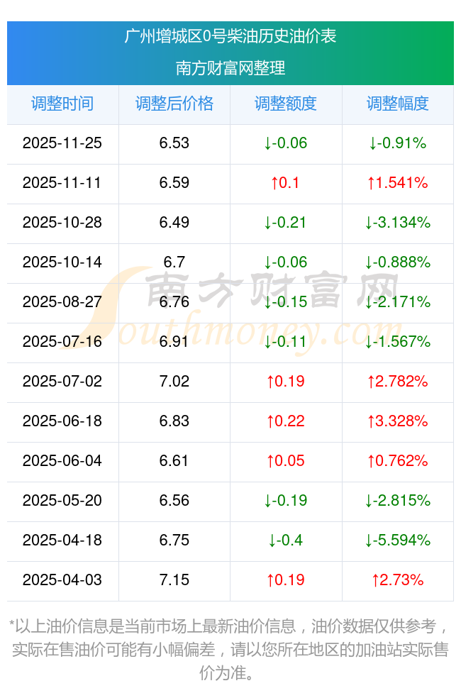 12月2日廣州增城區(qū)0號(hào)柴油歷史油價(jià)走勢圖