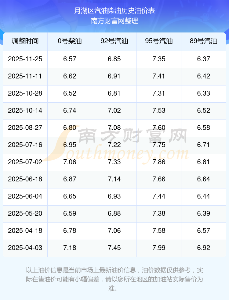 月湖區(qū)歷史油價表