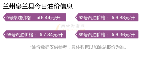 12月2日蘭州皋蘭縣今日汽油價格如下:92號汽油6.88元;95號汽油7.34元;89號汽油6.36元;0號柴油6.44元(該價格為11月25日調(diào)整后的價格)。