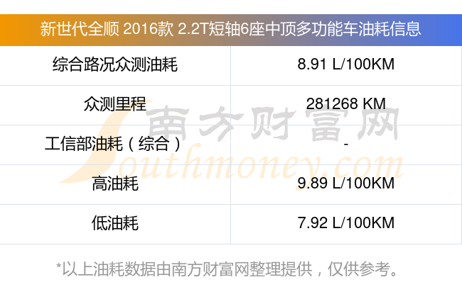 根據(jù)車主實測數(shù)據(jù),該車型低油耗為7.92升/百公里,高油耗為9.89升/百公里,綜合路況眾測油耗為8.91升/百公里。