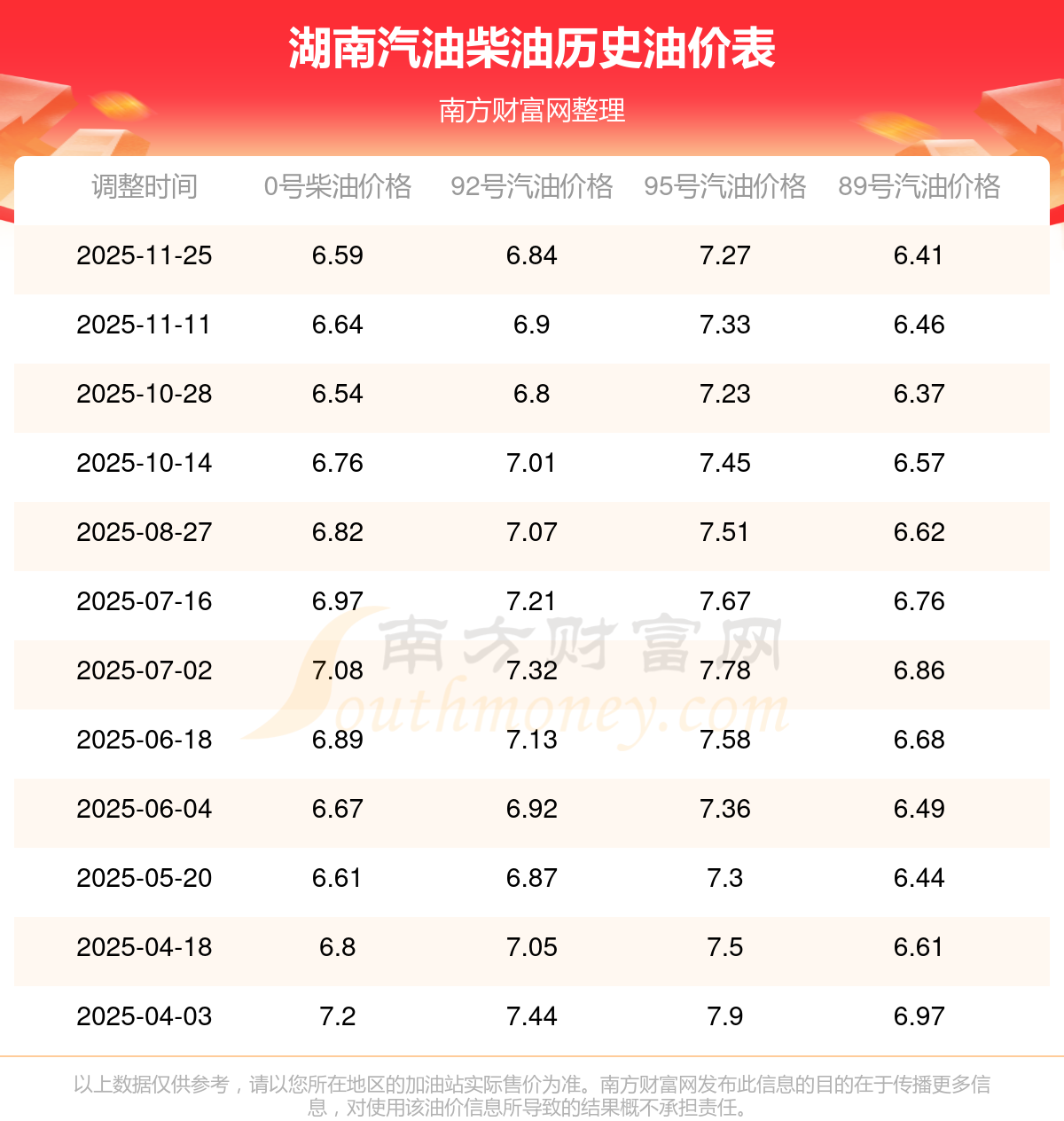 12月2日,湖南0號柴油的價格是6.59元每升,本次的調(diào)整時間為11月25日,對比上次的調(diào)整下調(diào)了0.06元,下調(diào)0.844%,12月8日24時為下一輪油價調(diào)整時間,還有6.25天。