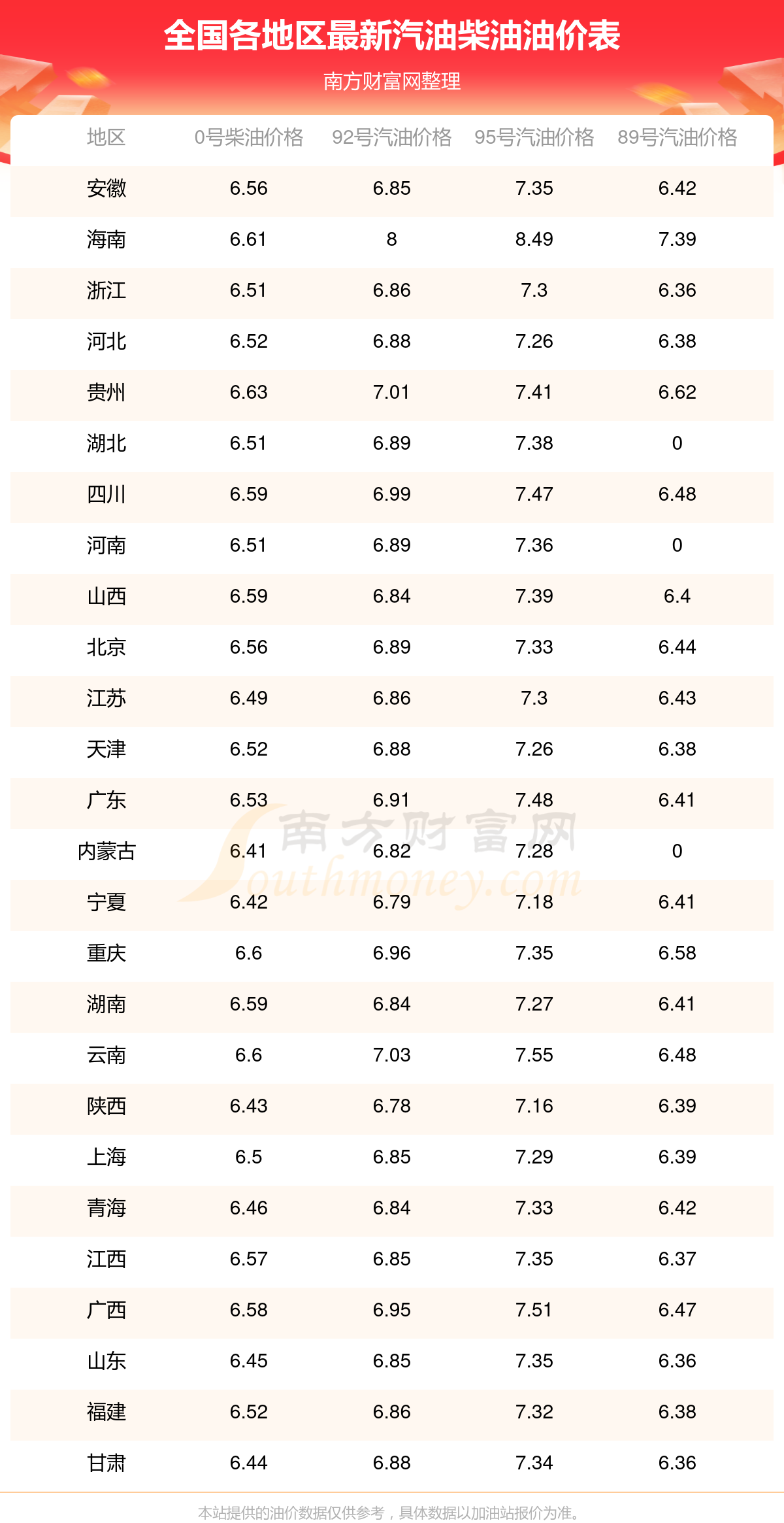 2025年12月2日全國各地汽油價(jià)格調(diào)整時(shí)間及價(jià)格一覽表