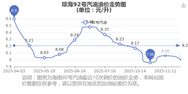 汽油、柴油12月2日的價(jià)格是多少錢一升?詳情為:92號(hào)汽油為8元,下調(diào)了0.06元;95號(hào)汽油為8.49元,下調(diào)了0.06元;89號(hào)汽油為7.39元,下調(diào)了0.05元;0號(hào)柴油為6.61元,下調(diào)了0.06元,本次油價(jià)的調(diào)整時(shí)間為11月25日。下一輪油價(jià)調(diào)整時(shí)間12月8日24時(shí),距離現(xiàn)在還有6.23天。
