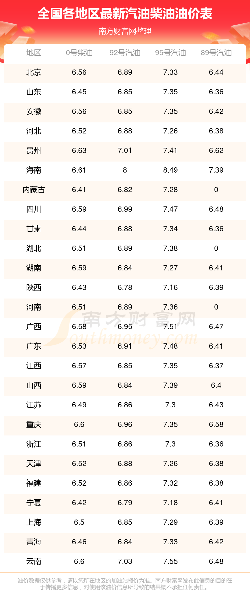油價調整最新消息:這一輪油價調整的時間是11月25日,調整后全國油價的具體價格為:92號汽油平均價格為7元每升,其中,最低的是陜西,6.78元每升,最高的是海南,8.00元每升。95號汽油平均價格為7元每升,其中,最低的是陜西,7.16元每升,最高的是海南,8.49元每升。0號柴油平均價格為:7元每升,其中,最低的是內蒙古,6.41元每升,最高的是貴州,6.63元每升。89號汽油平均價格為6元每升,其中,最低的是浙江,6.36元每升,最高的是海南,7.39元每升。下一輪汽油價格調整時間12月8日24時,距離現(xiàn)在還有6.22天。