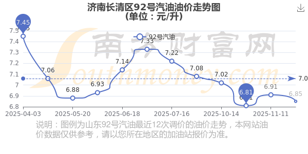 濟(jì)南長(zhǎng)清區(qū)92號(hào)汽油歷史油價(jià)走勢(shì)圖