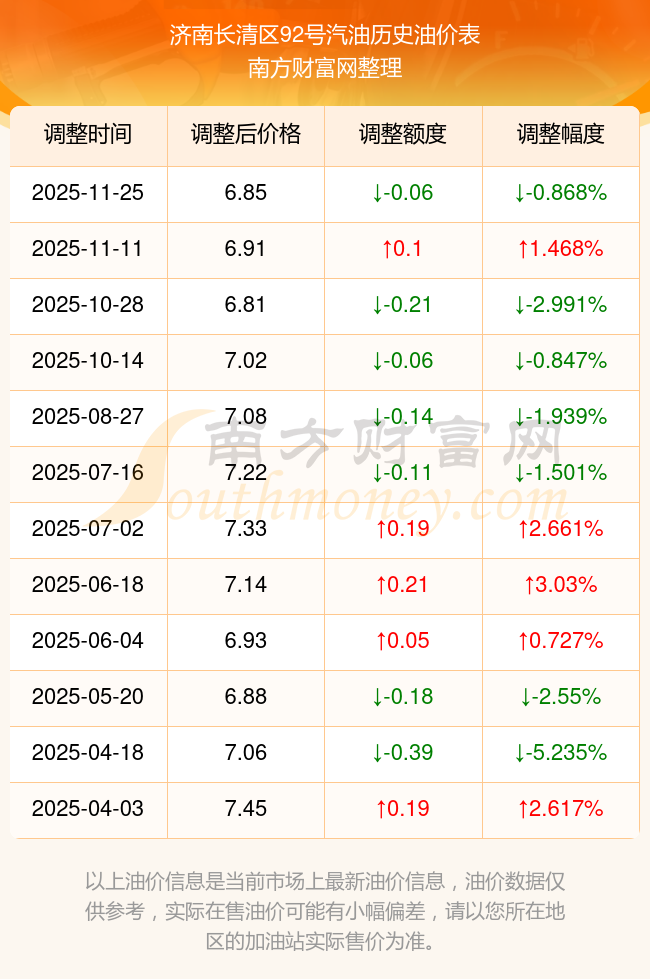濟(jì)南長(zhǎng)清區(qū)92號(hào)汽油歷史油價(jià)一覽表