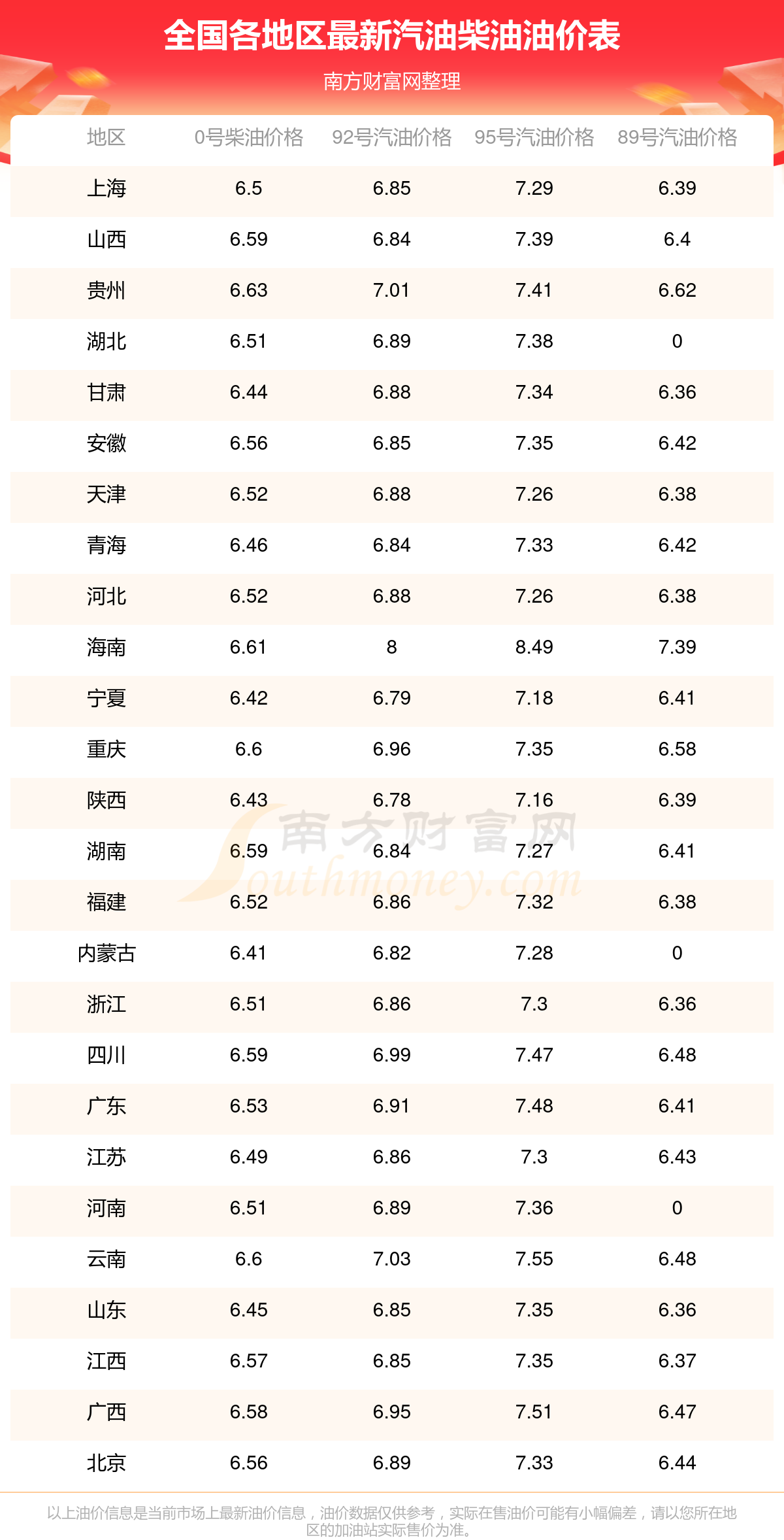 以上油價信息是當前市場上最新油價信息,油價數(shù)據(jù)僅供參考,實際在售油價可能有小幅偏差,請以您所在地區(qū)的加油站實際售價為準。