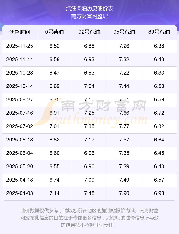 2025年汽油柴油油價(jià)調(diào)整一覽表