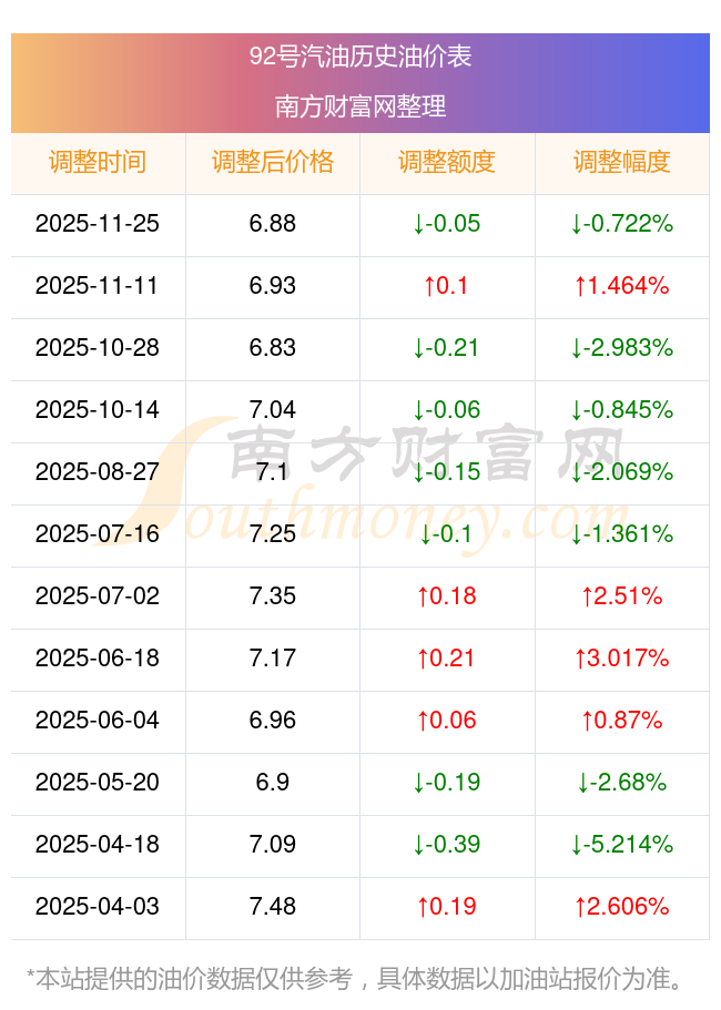 河北2025年汽油價(jià)格調(diào)整時(shí)間表