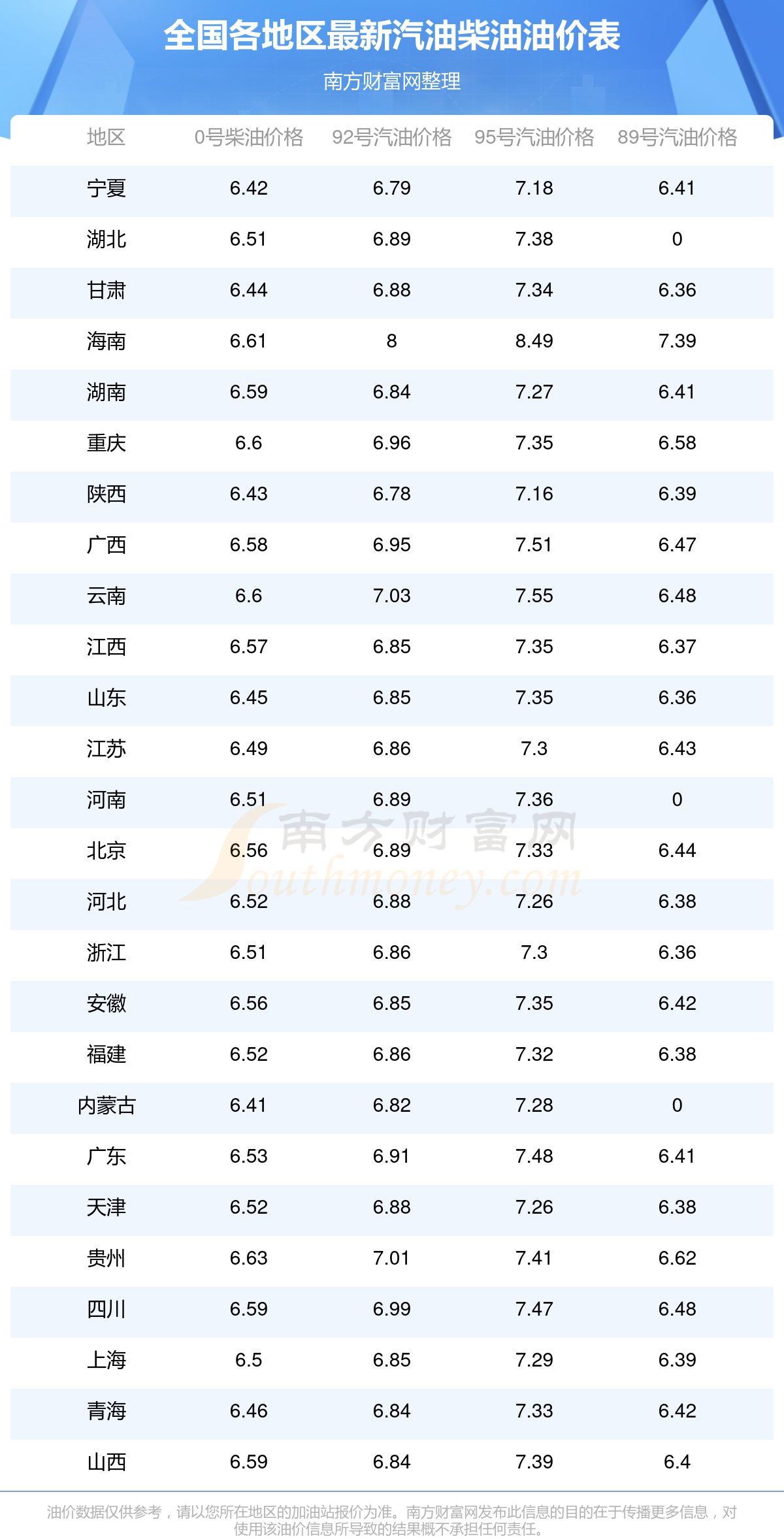 油價(jià)數(shù)據(jù)僅供參考,請(qǐng)以您所在地區(qū)的各加油站報(bào)價(jià)為準(zhǔn)。