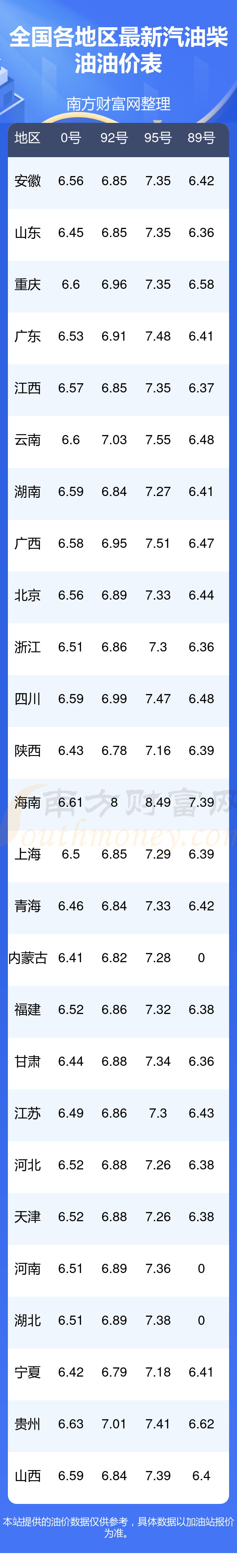 本站提供的油價(jià)數(shù)據(jù)僅供參考,具體數(shù)據(jù)以加油站報(bào)價(jià)為準(zhǔn)。