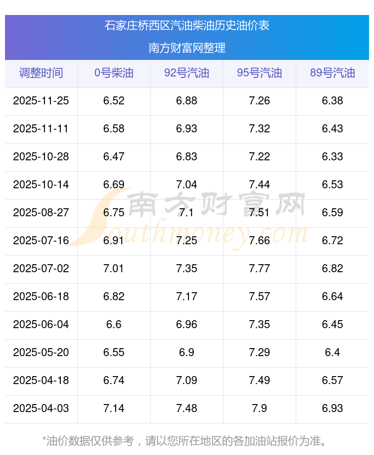 2025年石家莊橋西區(qū)油價(jià)調(diào)整時(shí)間表