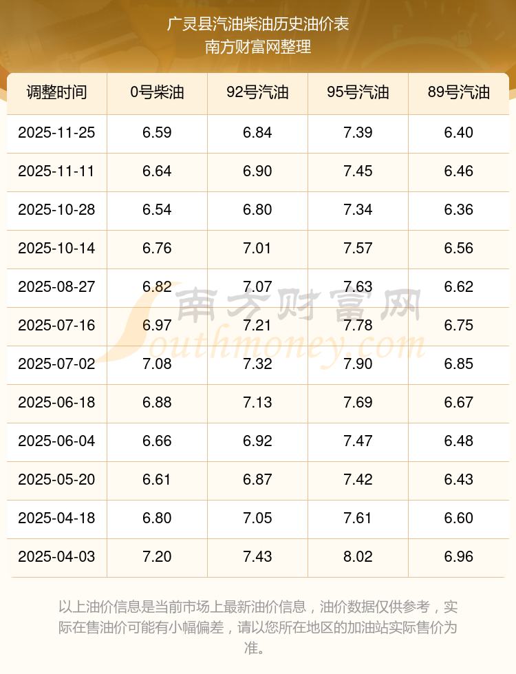 廣靈縣歷史油價表