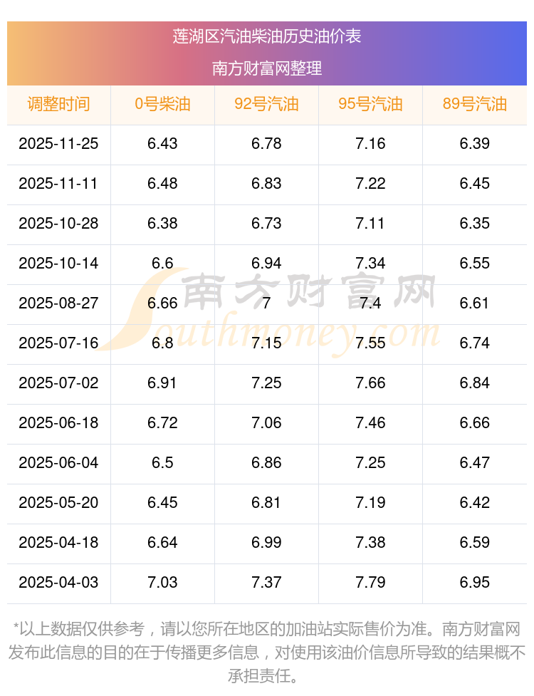 蓮湖區(qū)歷史油價表