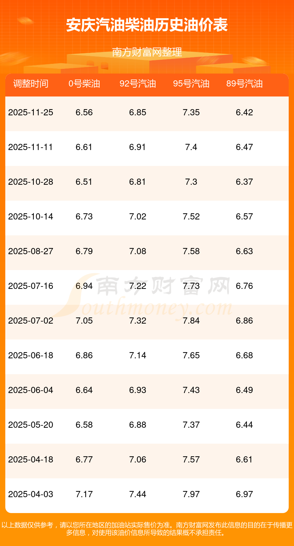 2025年汽油柴油歷史油價調(diào)整一覽表