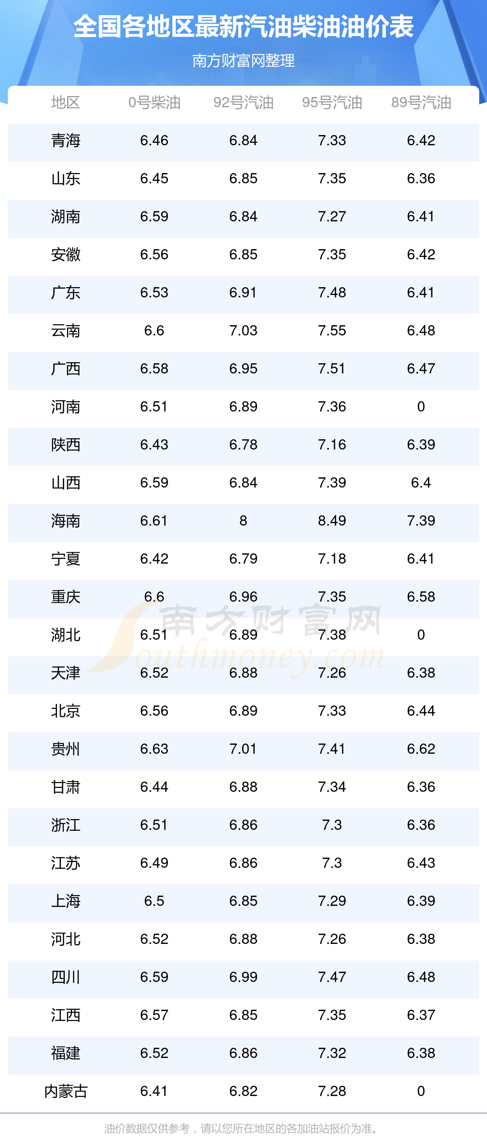 油價(jià)數(shù)據(jù)僅供參考,請以您所在地區(qū)的各加油站報(bào)價(jià)為準(zhǔn)。