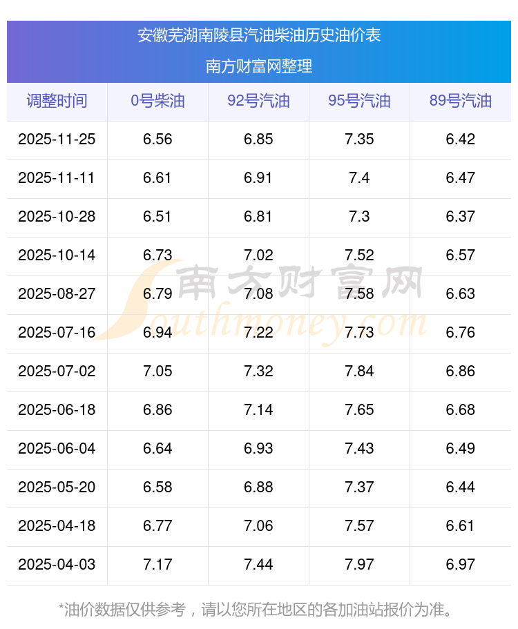 安徽蕪湖南陵縣汽油、柴油12月2日的價格是多少錢一升?具體如下:92號汽油為6.85元,下調(diào)了0.06元;95號汽油為7.35元,下調(diào)了0.05元;89號汽油為6.42元,下調(diào)了0.05元;0號柴油為6.56元,下調(diào)了0.05元,本輪油價的調(diào)整時間為11月25日。