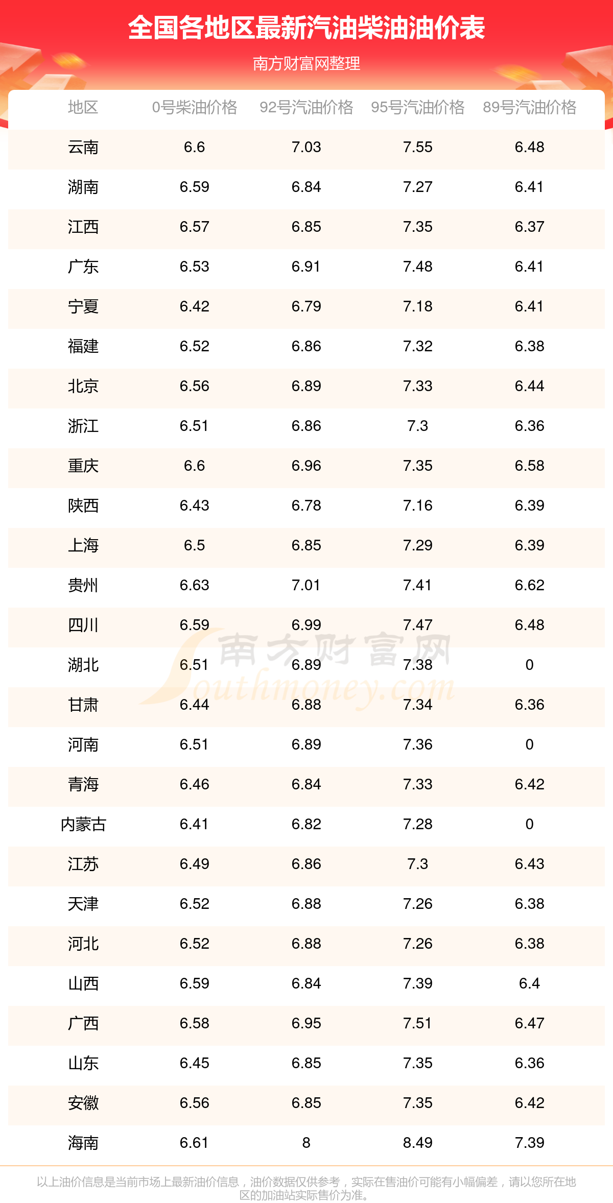 油價數(shù)據(jù)僅供參考,請以您所在地區(qū)的加油站報價為準(zhǔn)。南方財富網(wǎng)發(fā)布此信息的目的在于傳播更多信息,對使用該油價信息所導(dǎo)致的結(jié)果概不承擔(dān)任何責(zé)任。