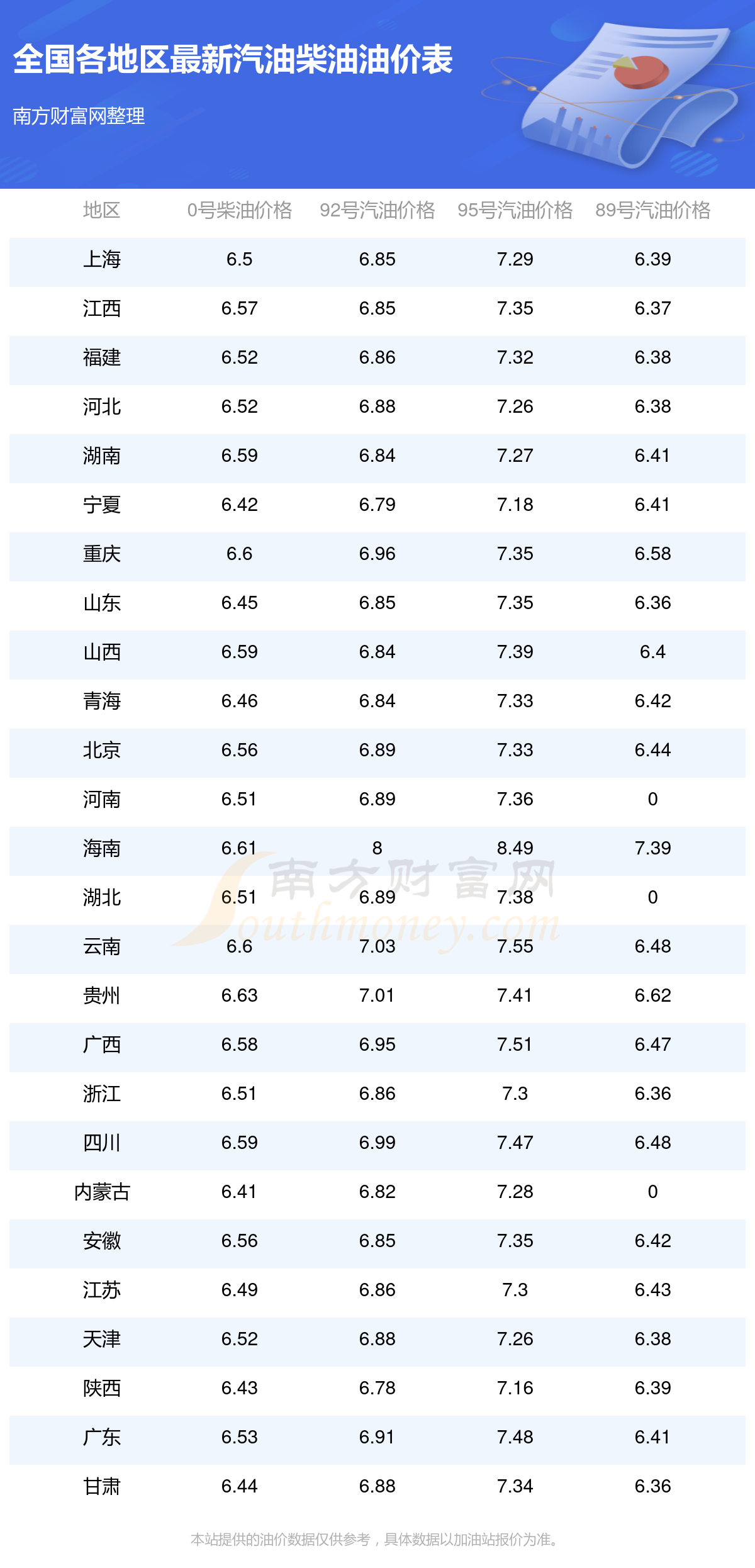 本站提供的油價數(shù)據(jù)僅供參考,具體數(shù)據(jù)以加油站報價為準(zhǔn)。