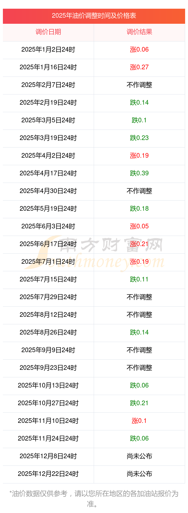 萬寧萬城鎮(zhèn)12月2日油價調(diào)整時間及價格表