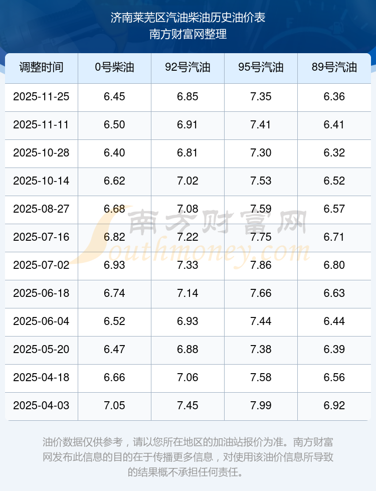 濟(jì)南萊蕪區(qū)歷史油價(jià)表