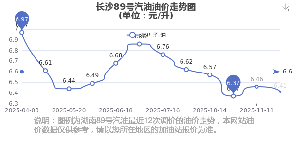 油價調整最新消息:長沙汽油、柴油12月2日的價格是多少錢一升?詳情為:92號汽油為6.84元,下跌了0.06元;95號汽油為7.27元,下跌了0.06元;89號汽油為6.41元,下跌了0.05元;0號柴油為6.59元,下跌了0.06元,本次油價的調整時間為11月25日。長沙下一輪油價調整時間12月8日24時,距離現在還有6.09天。