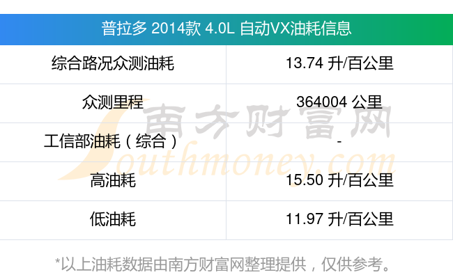 根據多位車主實測得出數(shù)據,該車型低油耗為11.97升每百公里,高油耗為15.50升每百公里,綜合路況眾測油耗為13.74升每百公里。