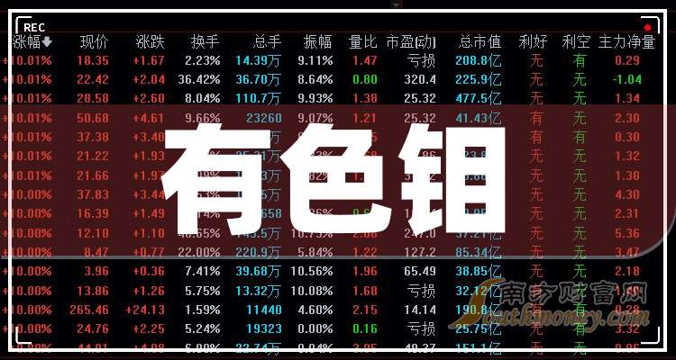 有色鉬題材龍頭有哪些?據(jù)南方財(cái)富網(wǎng)概念查詢工具數(shù)據(jù)顯示,有色鉬題材龍頭有: