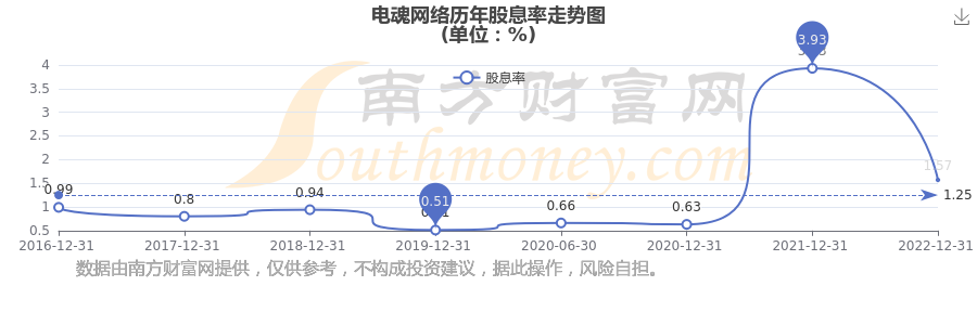 電魂網(wǎng)絡(luò)歷年股息率走勢如下圖: