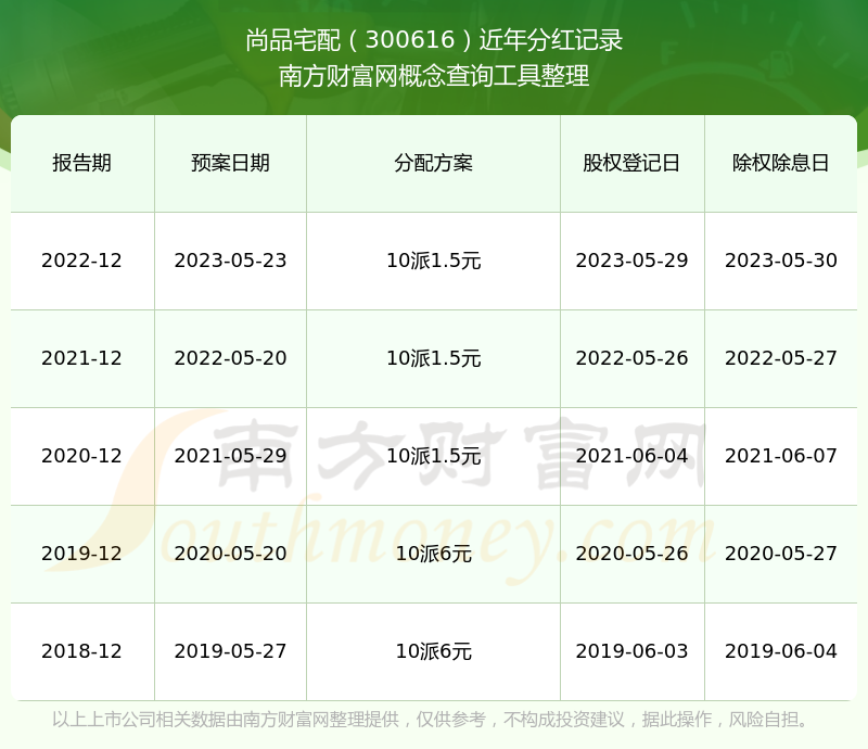 尚品宅配歷年分紅派息情況如下表所示: